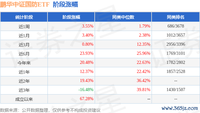 从业绩表现来看,鹏华中证国防ETF基金过去一年净值涨幅为15.07%,在同类基金中排名817/2216,同类基金过去一年净值涨幅中位数为11.09%。而基金过去一年的最大回撤为-21.53%,成立以来的最大回撤为-59.21%。